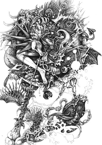 アーティスト 展示作品 >> 絵画・平面 絵画・平面 > ペン画 > ペン画 「悪魔が来たりて」