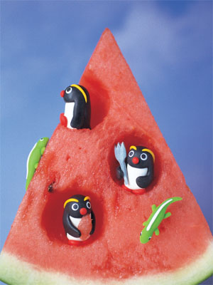 スイカにペンギン