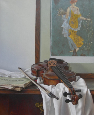 バックの額絵はポンペイの壁画の中でも最も有名な「春」である。
