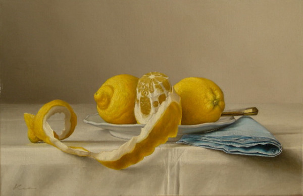 以来、この「半分むいたレモン」というモチーフを何回描いた事か、数えた事はないけど、相当な回数になると思う。
