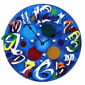 透明感のあるブルーのバックにカラフルな数字が鮮やかな掛け時計。そのポップでモダンな装いはあらゆるお部屋で存在感を発揮します。