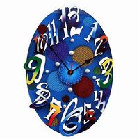 透明感のあるブルーのバックにカラフルな数字が鮮やかな掛け時計。