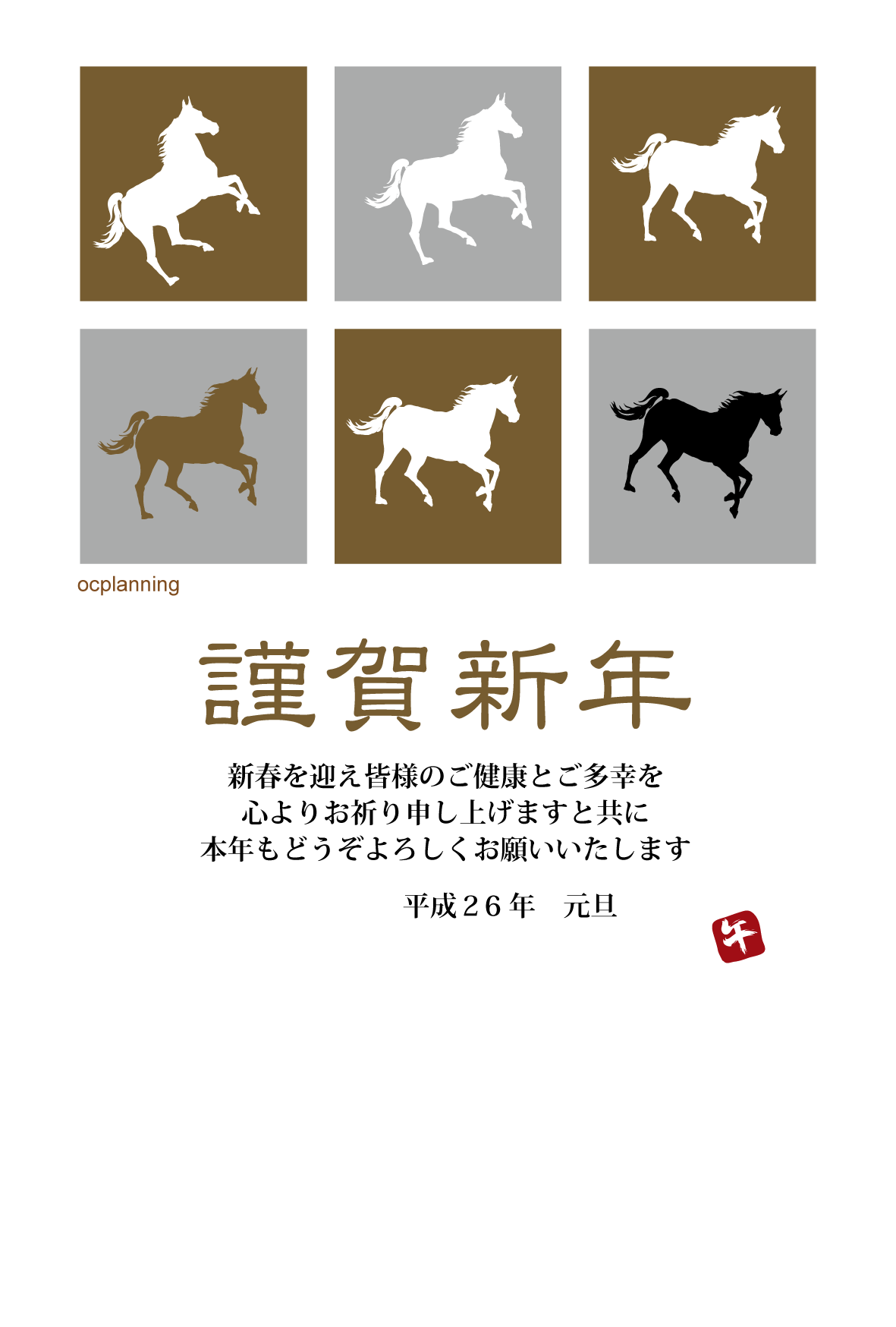 馬のイラスト年賀状テンプレート