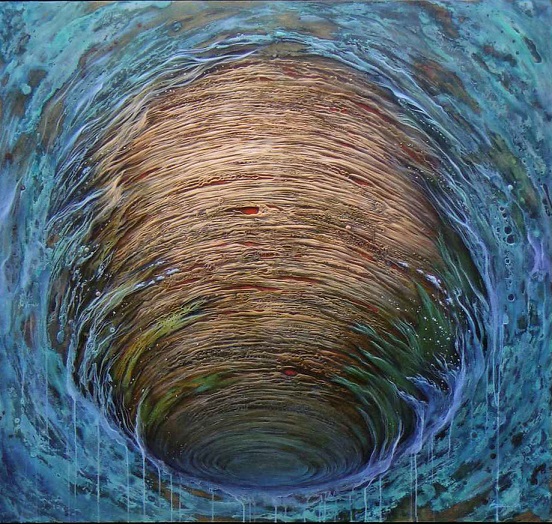 混沌とした中から出現する、滅び行く惑星のイメージを描くのに試行錯誤した作品です。