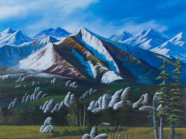 ロッキーのカルスト風景を描きました。